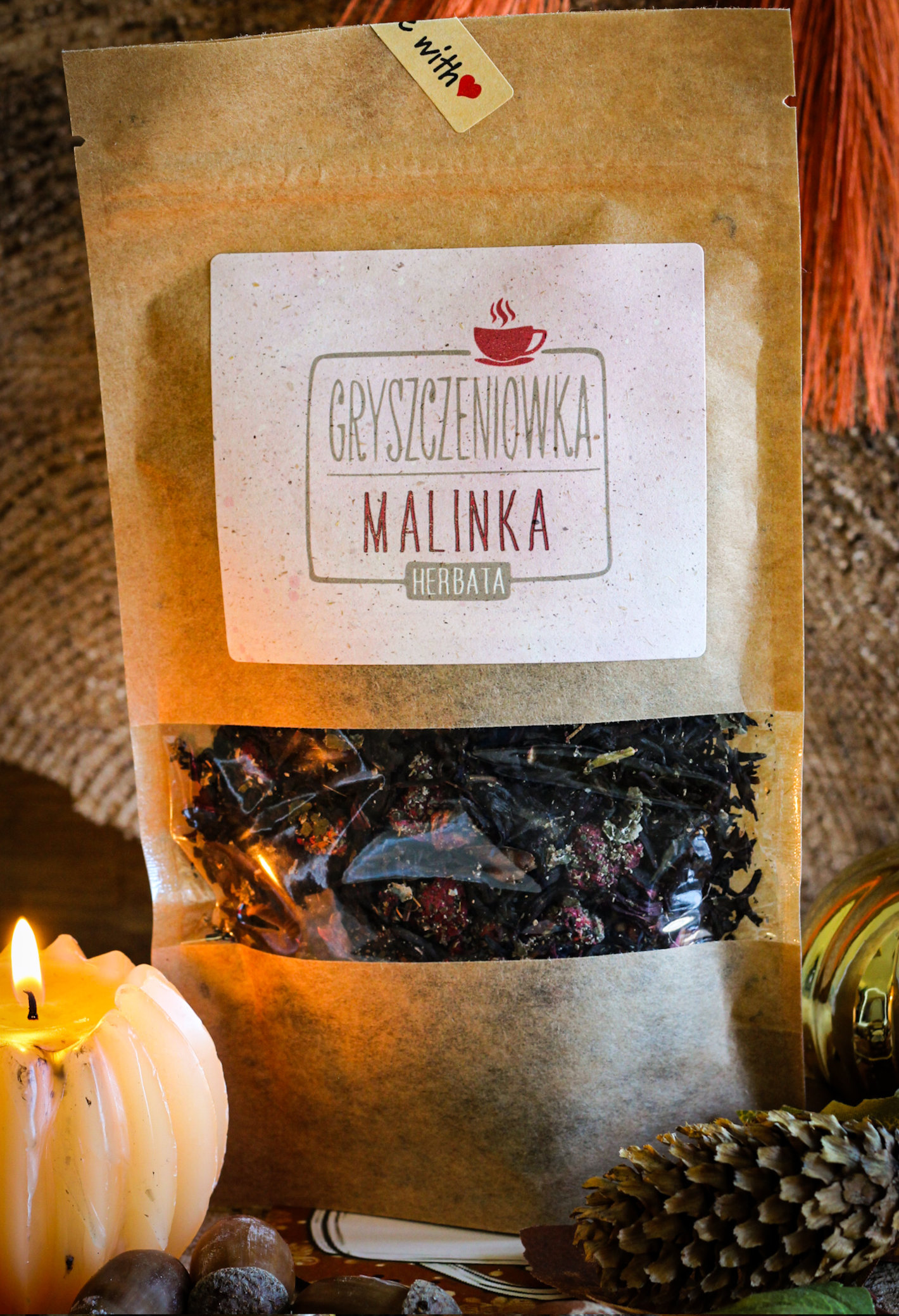 - Z dodatkiem hibiskusa i liści maliny